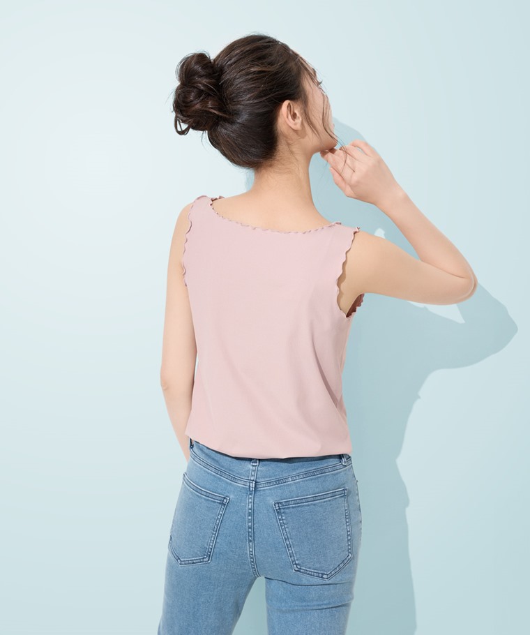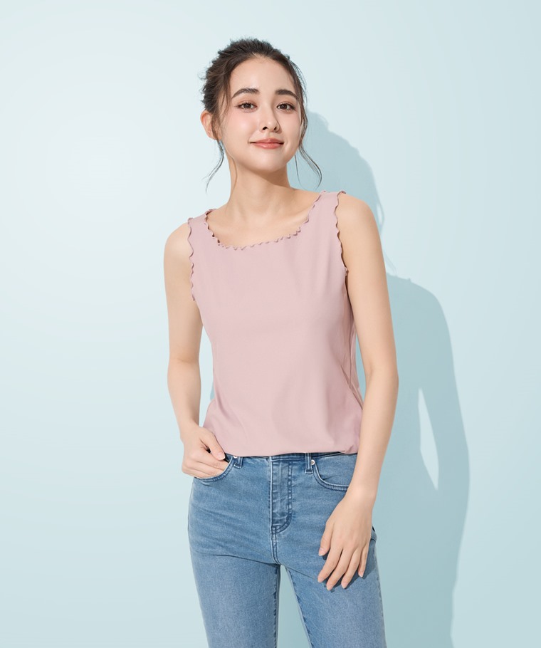 輕涼羅紋木耳邊背心-女(杏色-S)