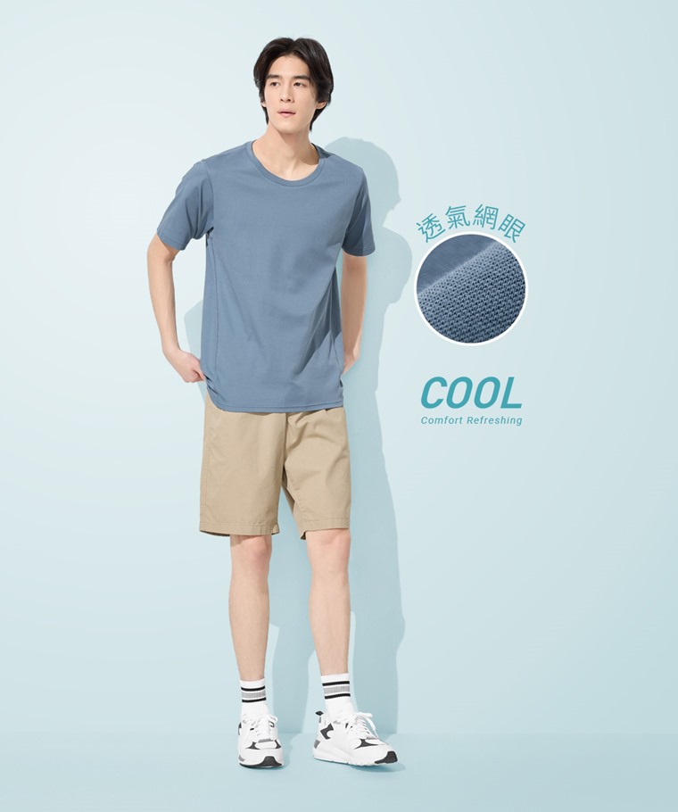 涼感網眼圓領T恤-男(藏青-S)