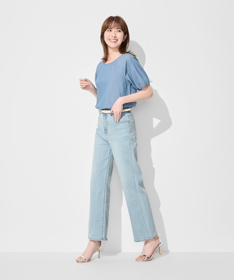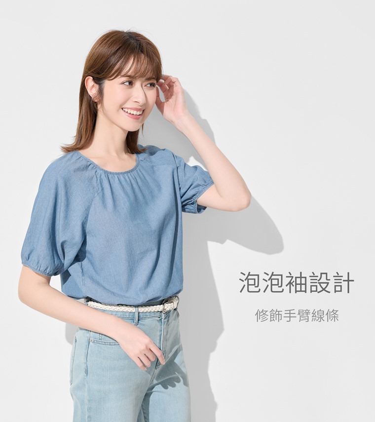 輕型牛仔泡泡袖上衣-女(藍色-S)