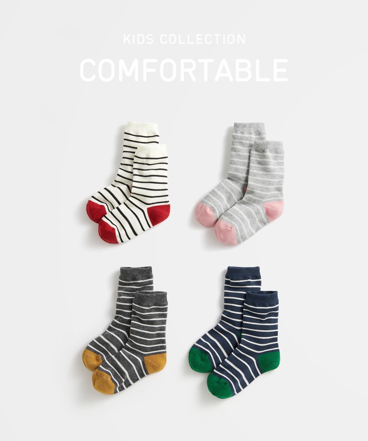 條紋中筒襪-童(白底黑條-S)