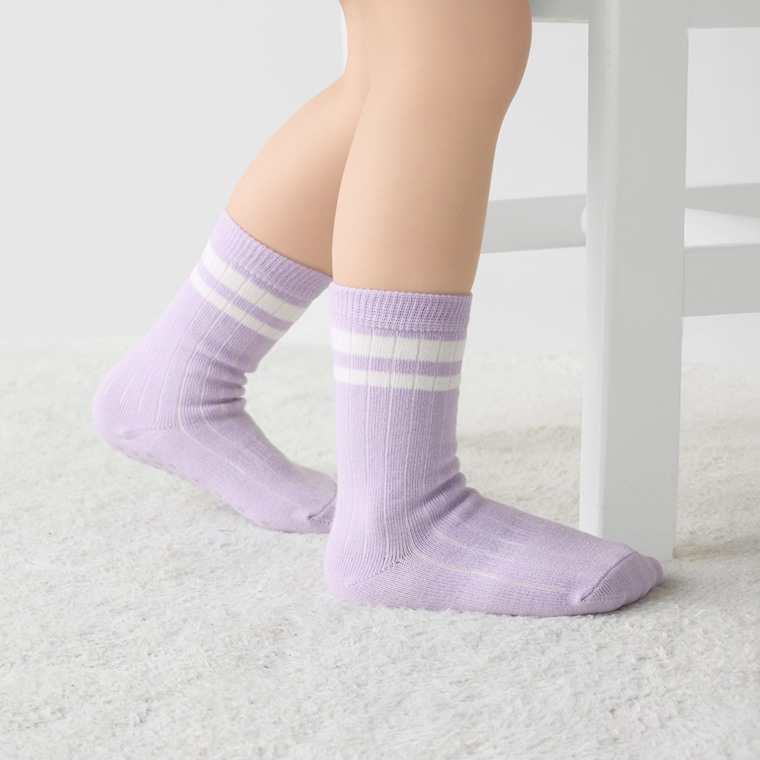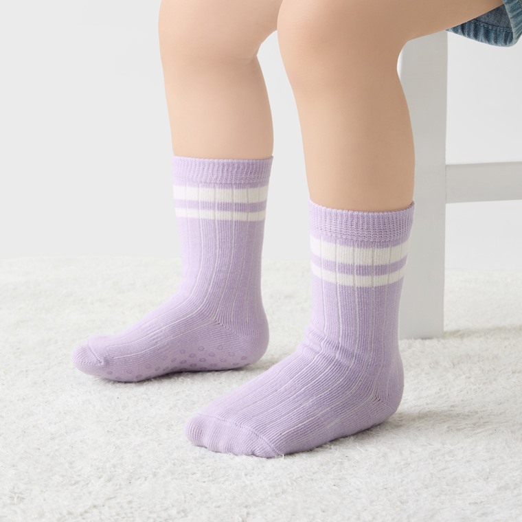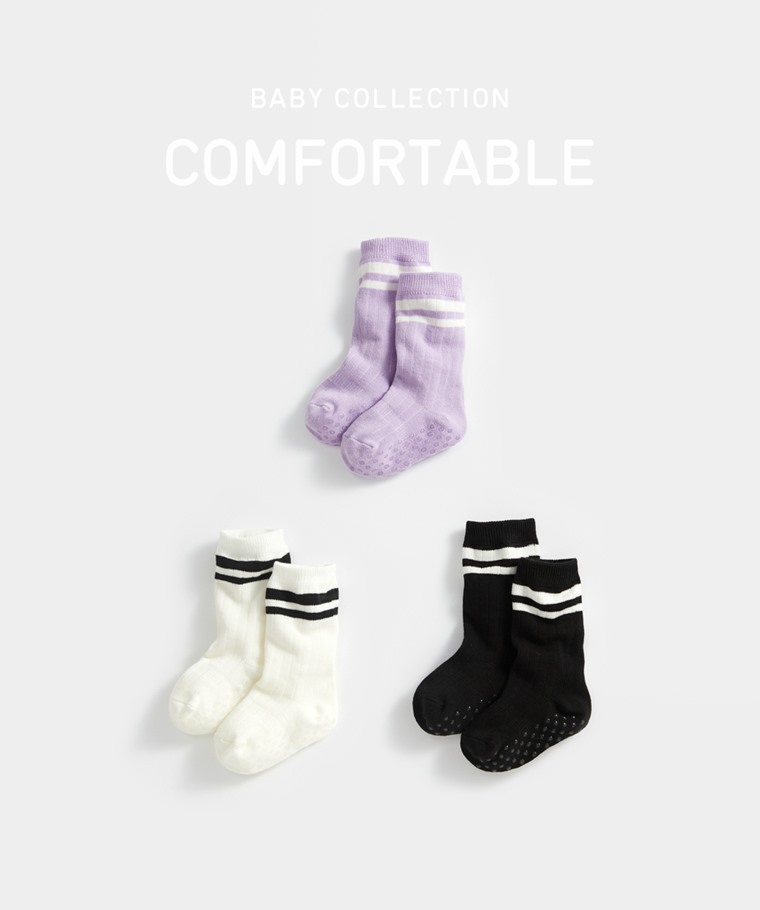 羅紋配條中筒襪-Baby(白底黑條-S)