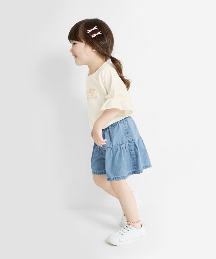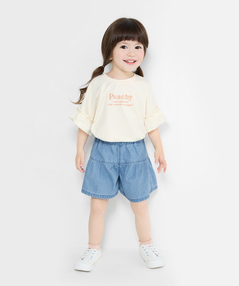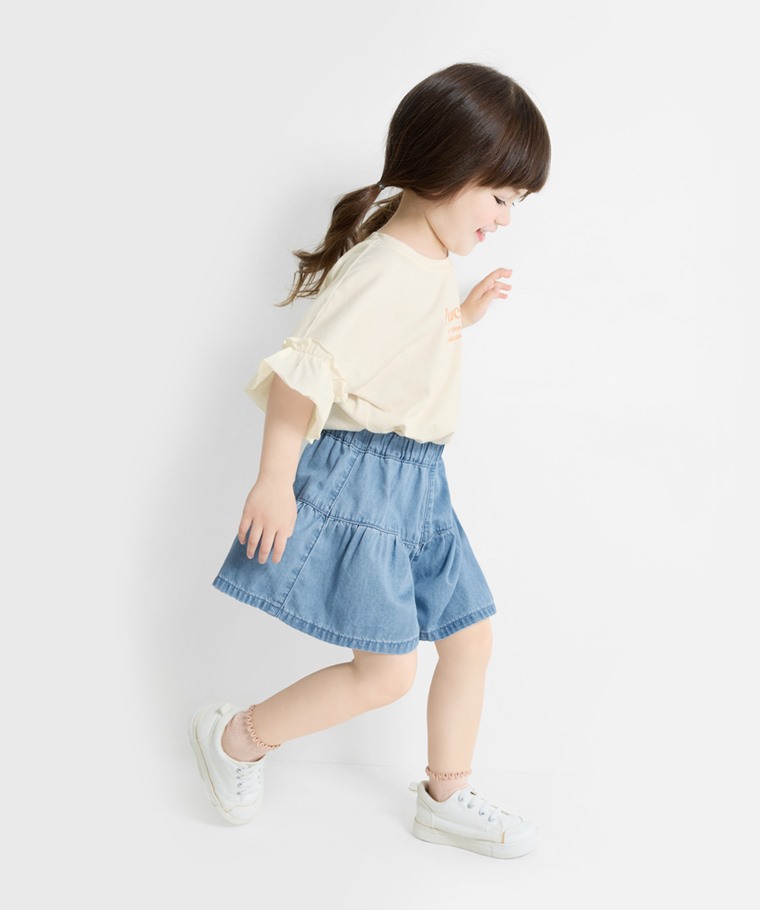 軟牛仔純棉蛋糕短褲-童(淺藍-100)
