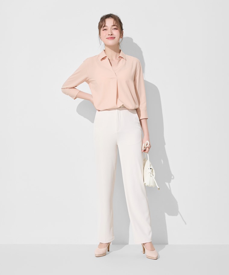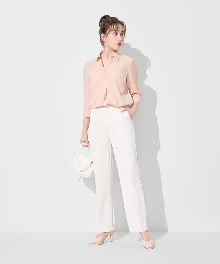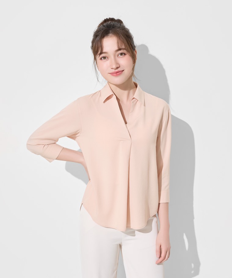 嫘縈開領七分袖襯衫-女(白色-S)