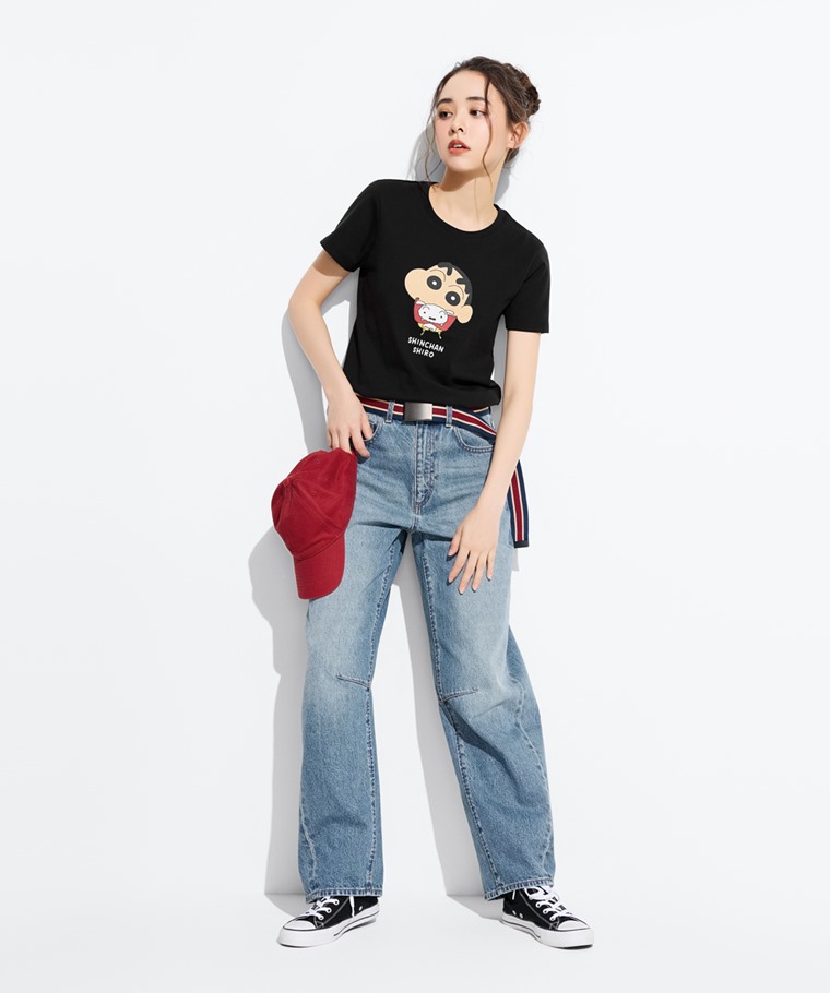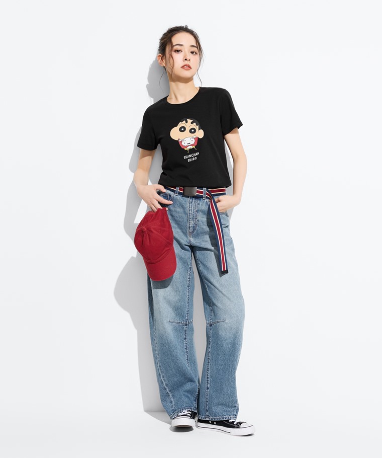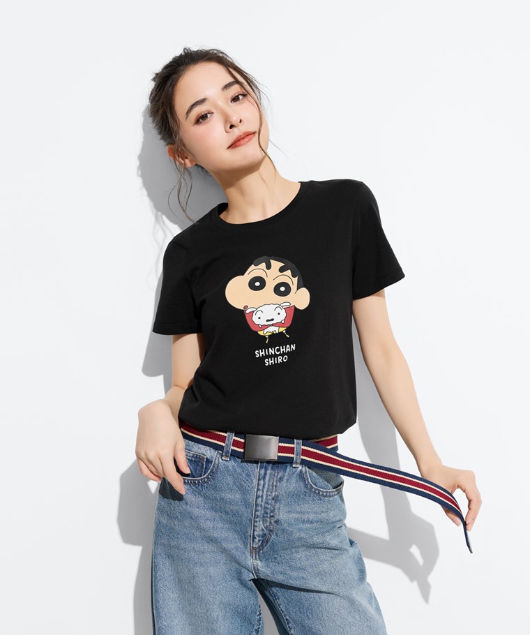 蠟筆小新印花T恤-03-女(黑色-S)