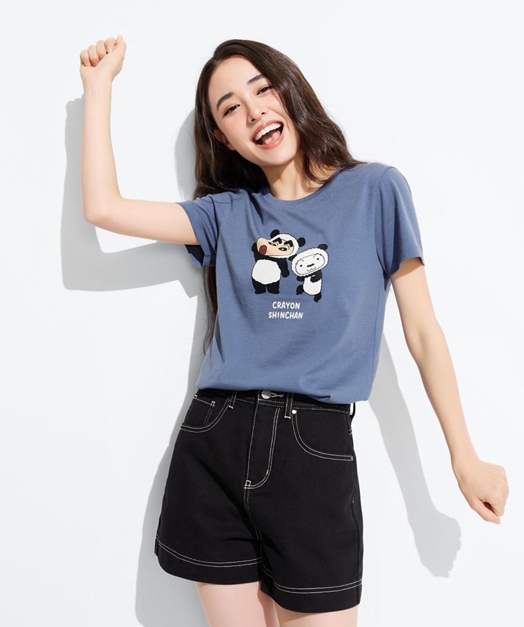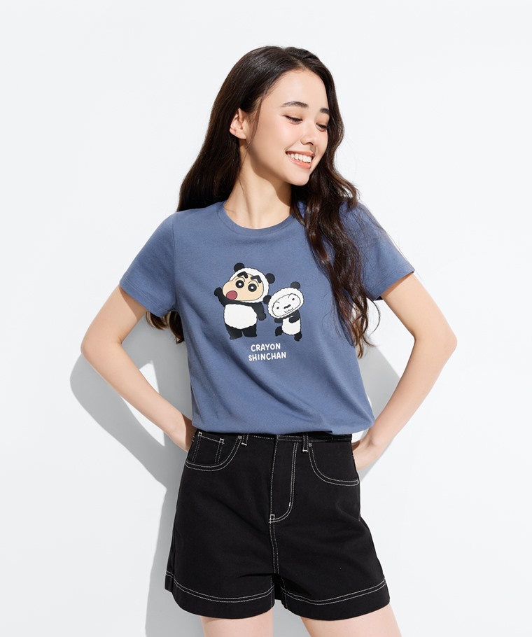 蠟筆小新印花T恤-04-女(灰藍紫-S)