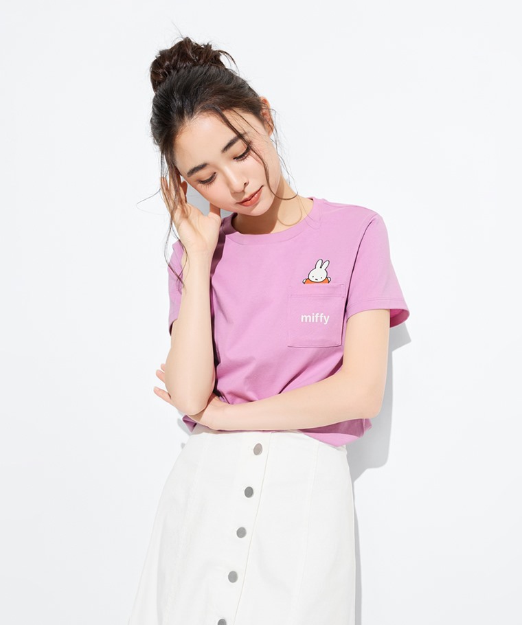Miffy and Friends口袋印花T恤-06-女(灰藍紫-S)