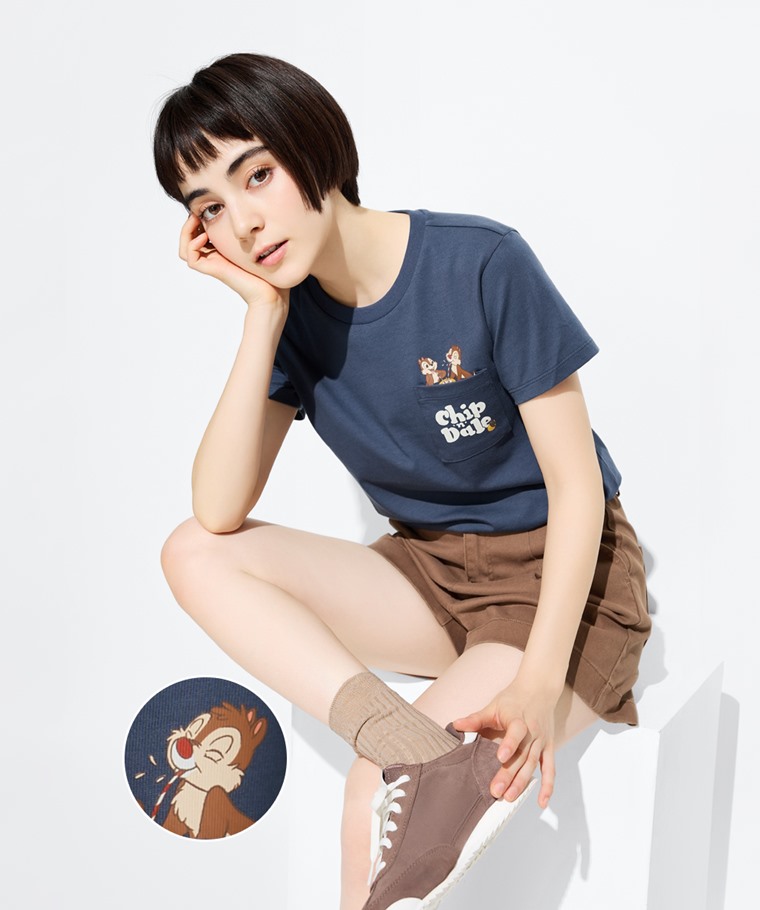 迪士尼系列口袋印花T恤-37-女(復古藍-S)