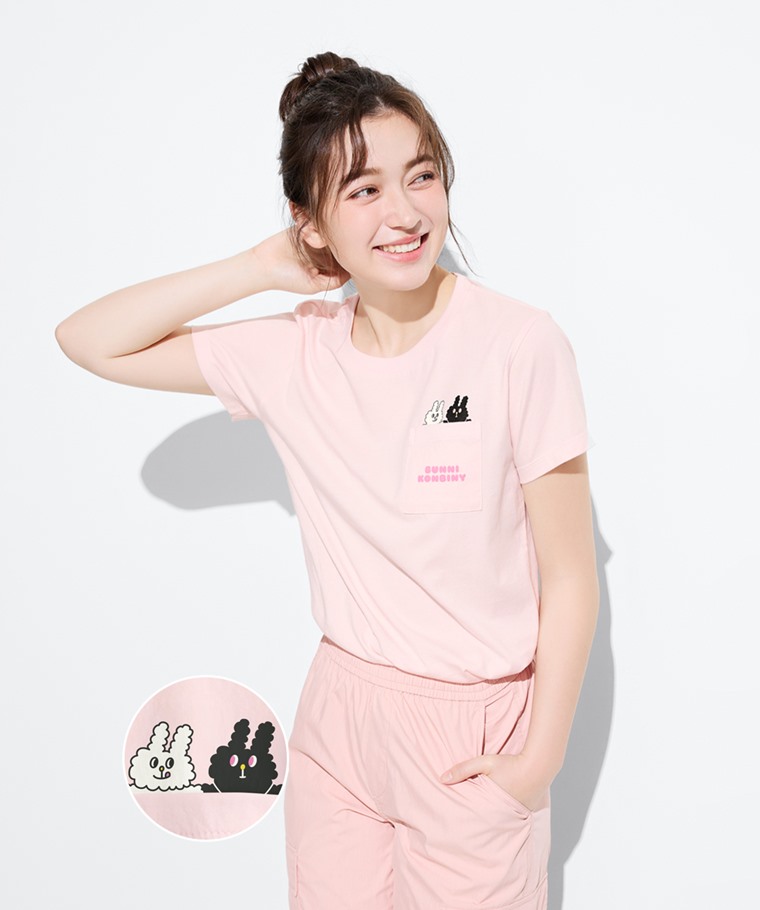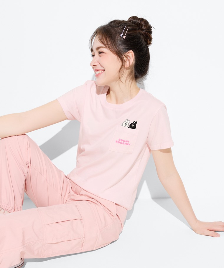 Bunni Konbiny口袋印花T恤-03-女(淺粉-S)