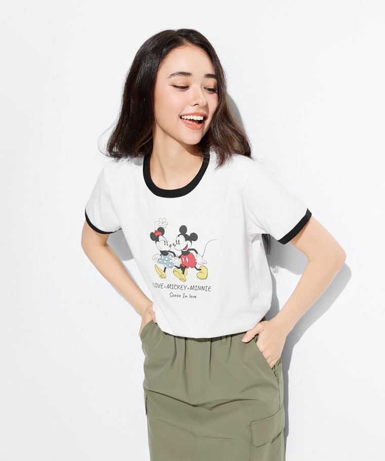 迪士尼系列羅紋配色印花T恤-13-女(白色-S)