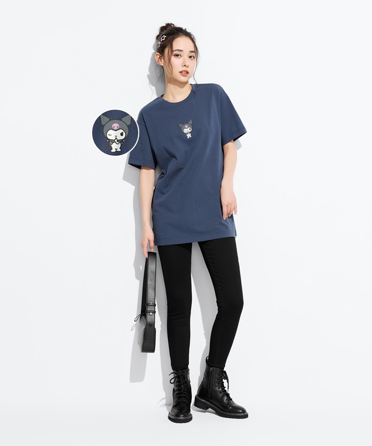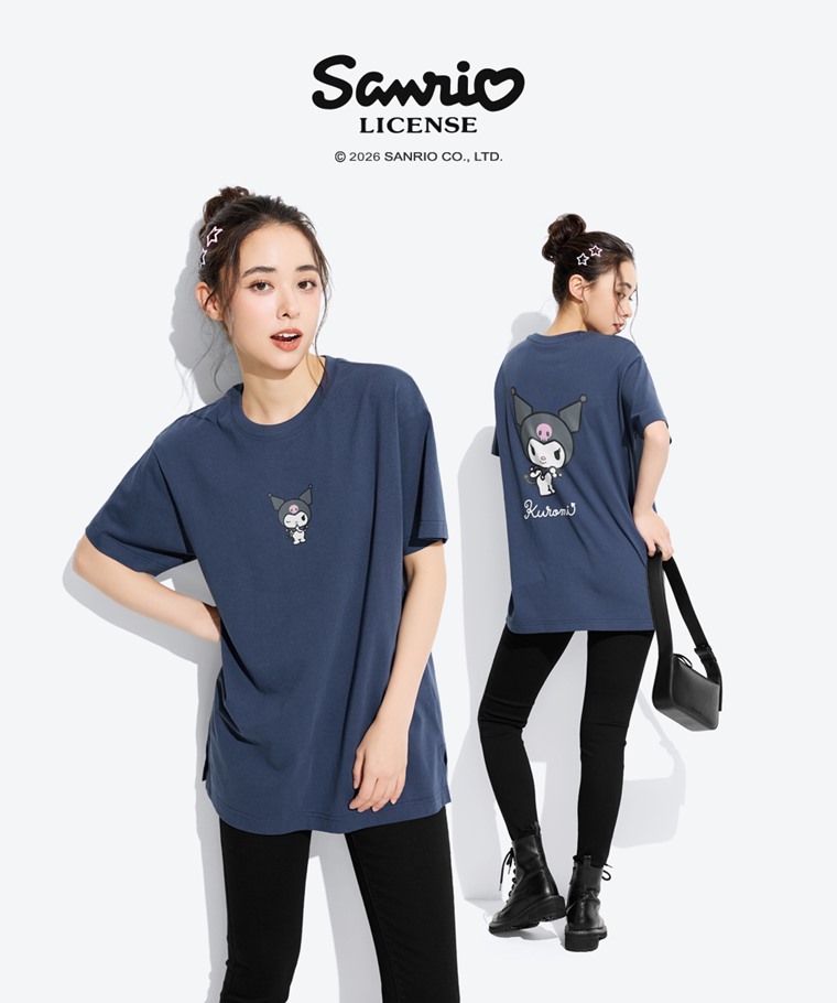 三麗鷗寬長版印花T恤-05-女(復古藍-S)