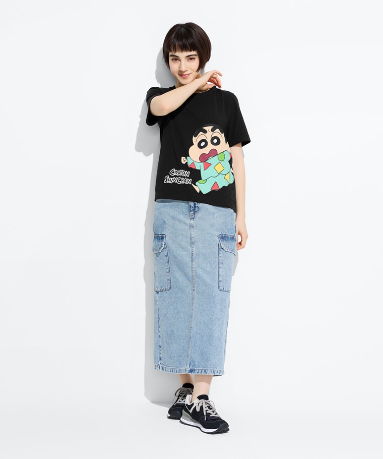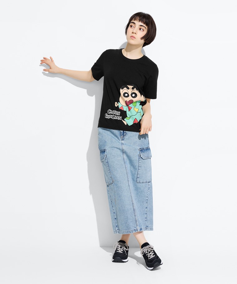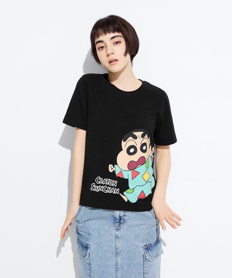 蠟筆小新厚版印花T恤-08-女(黑色-S)