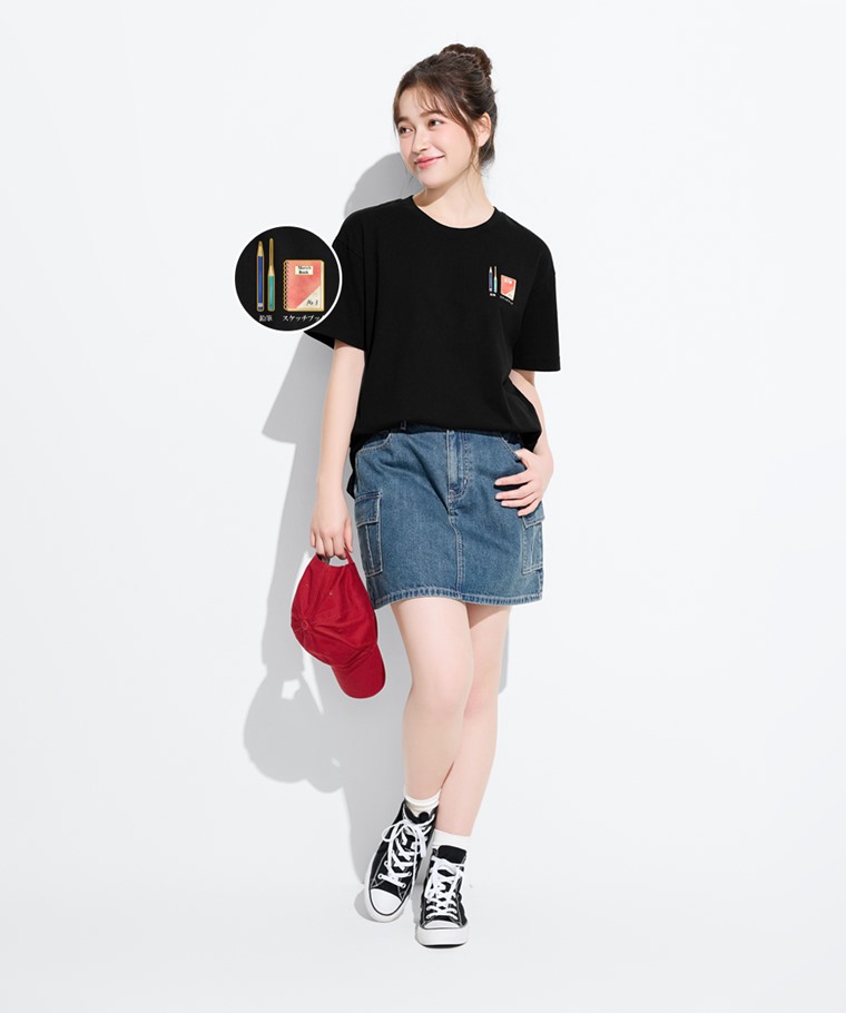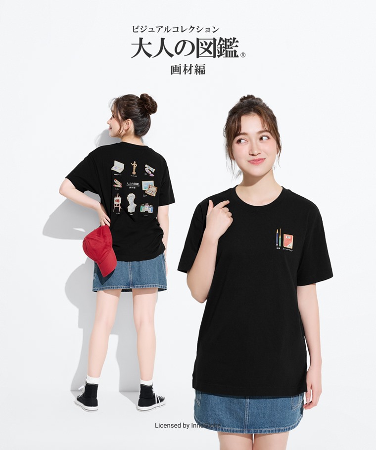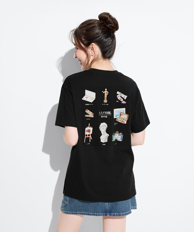 大人的圖鑑寬長版印花T恤-13-女(黑色-S)
