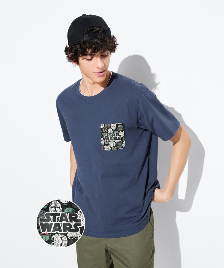 STAR WARS系列口袋印花T恤-03-男(復古藍-S)