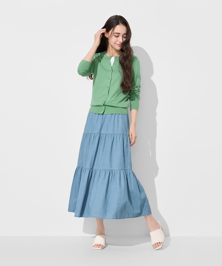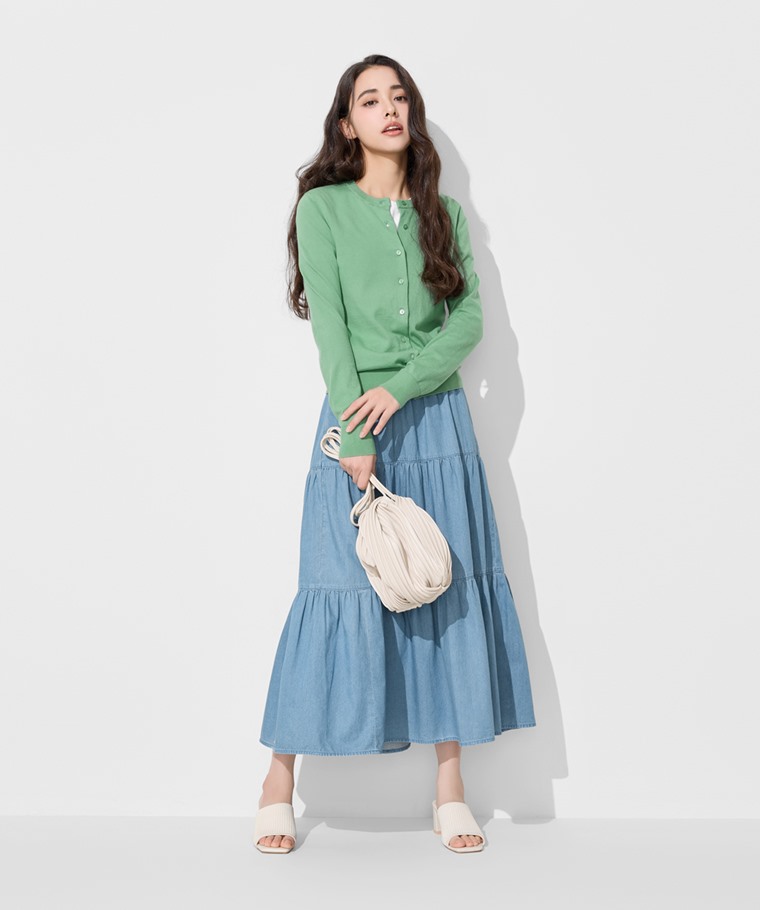 軟牛仔蛋糕長裙-女(藍色-S)