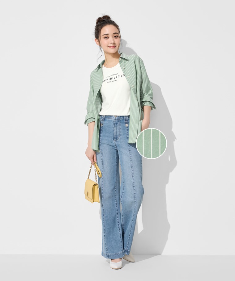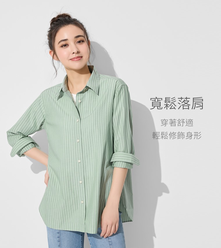 柔棉條紋長袖襯衫-女(藍色條-S)