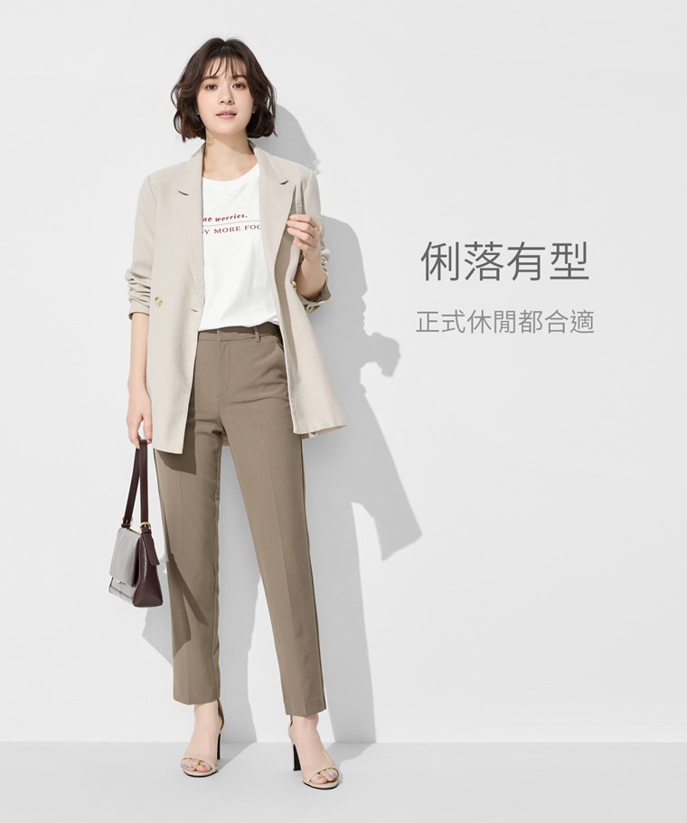 彈性西裝九分褲-女(淺棕-S)
