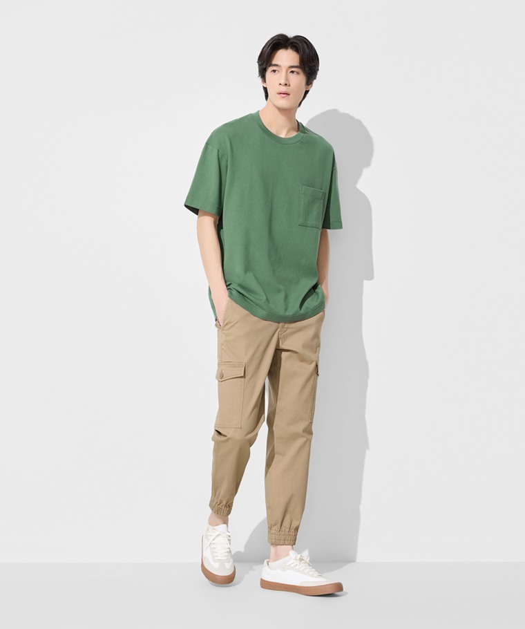 粗紡寬版口袋T恤-男(黑色-S)