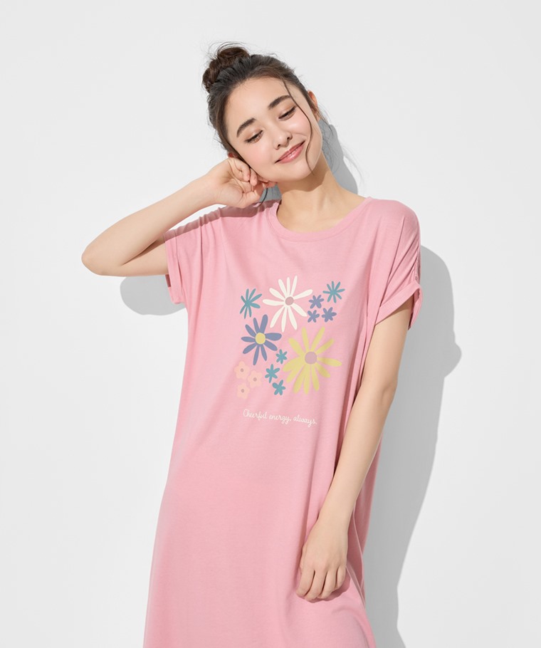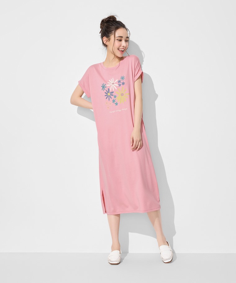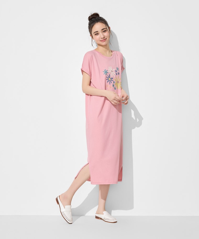 莫代爾花卉連袖長洋裝-女(深藍-M)