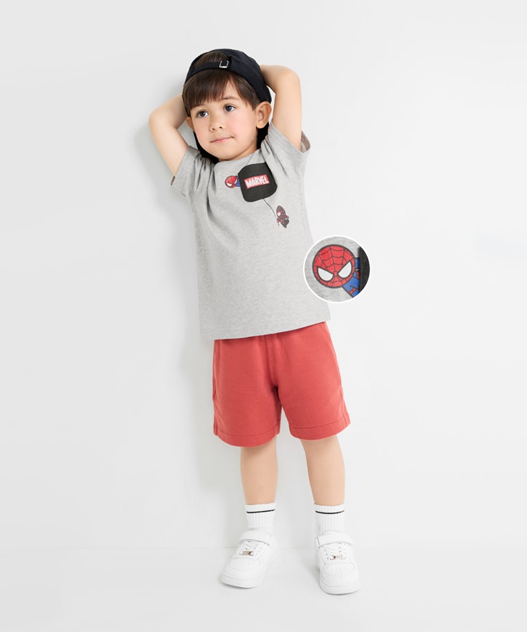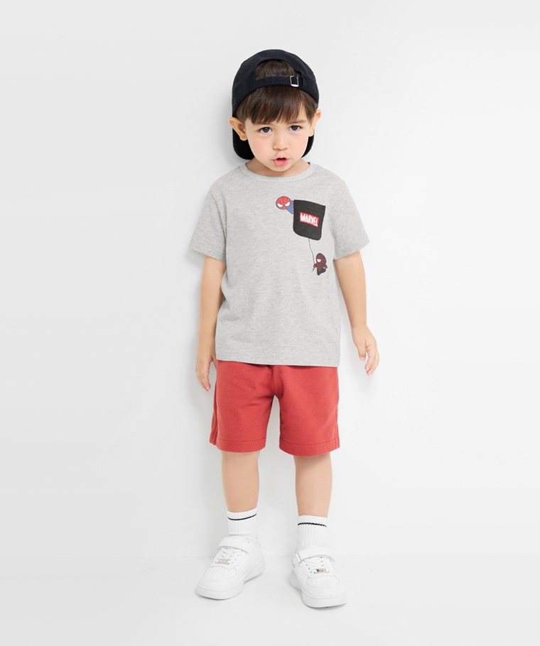 漫威系列口袋印花T恤-02-童(淺麻灰-100)