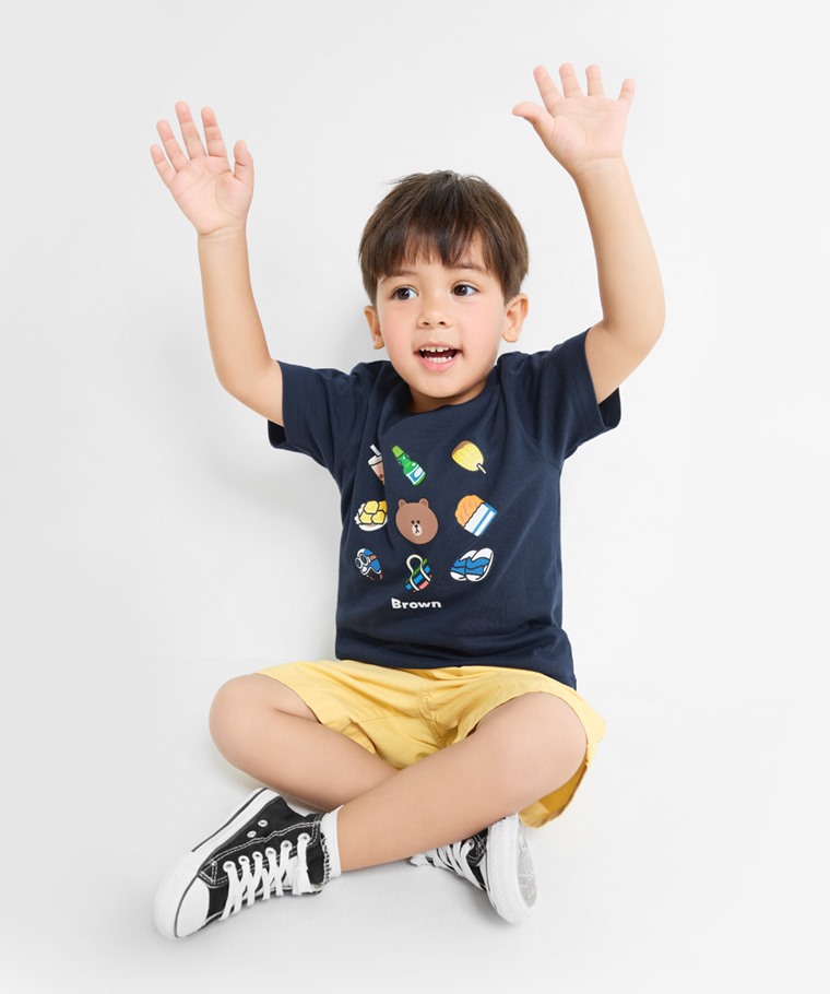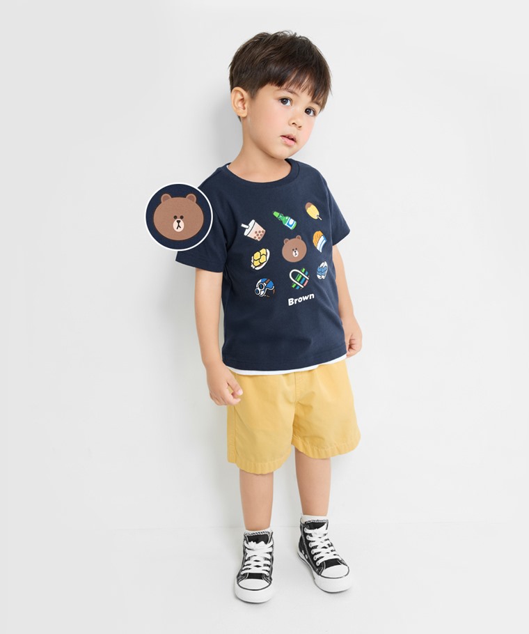 LINE FRIENDS印花T恤-05-童(藏青-100)