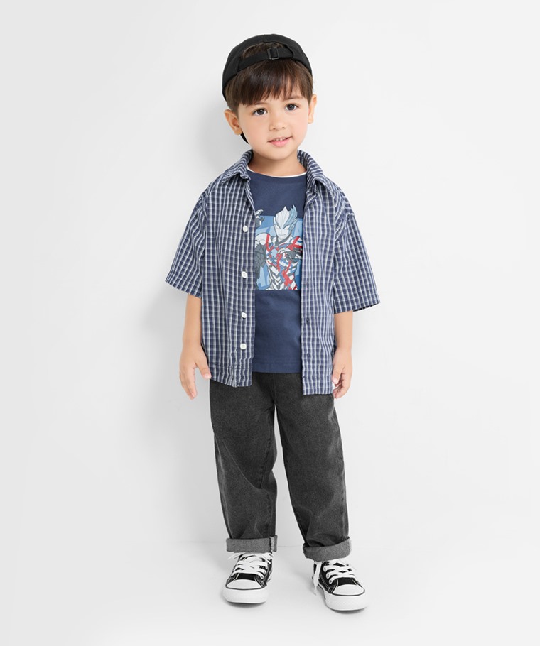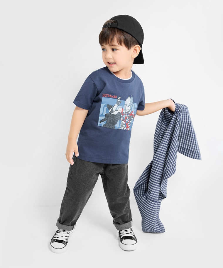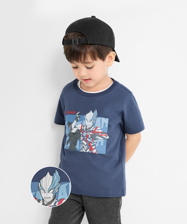 超人力霸王印花T恤-08-童(復古藍-100)