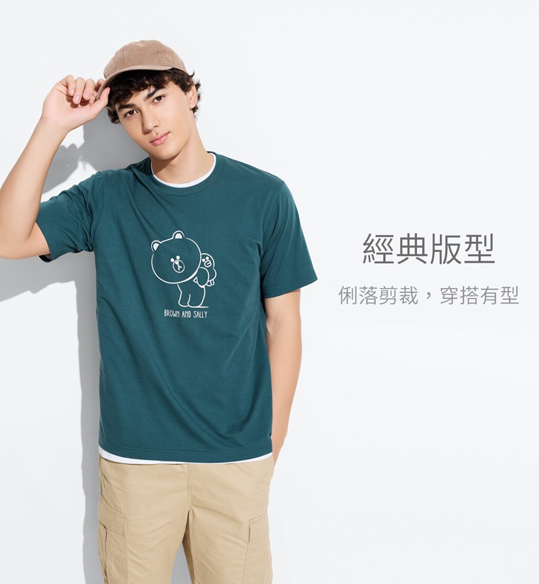 LINE FRIENDS印花T恤-01-男(藍綠-S)