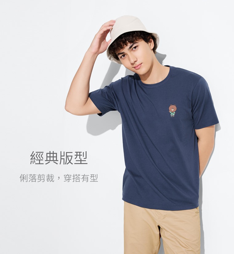 LINE FRIENDS印花T恤-09-男(復古藍-S)