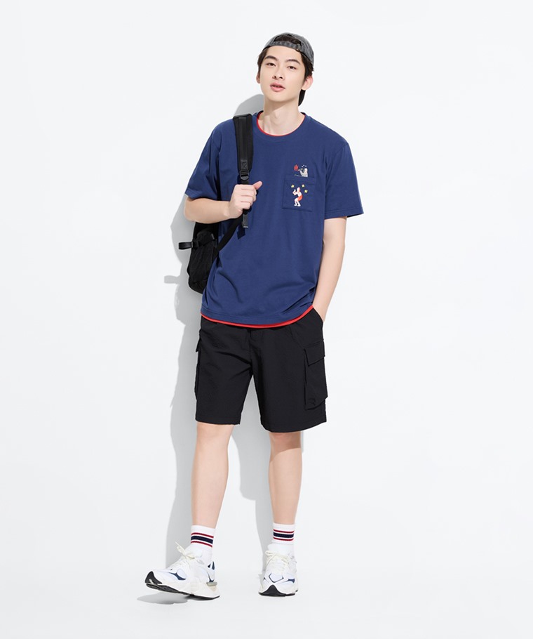 超人力霸王口袋印花T恤-10-男(寶藍-XXL)
