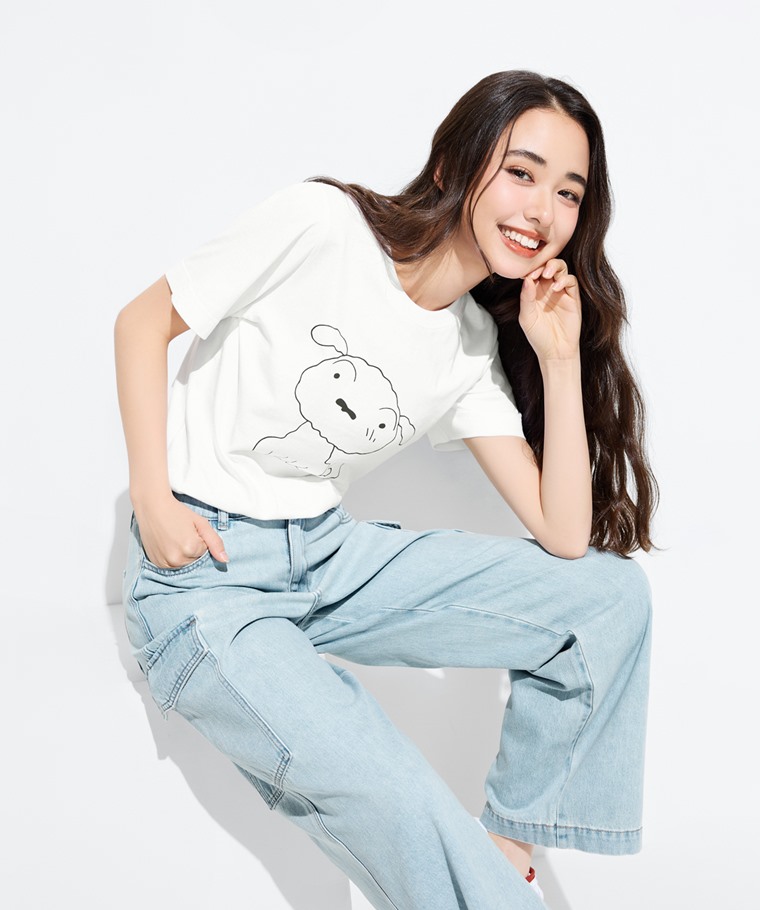 蠟筆小新厚版印花T恤-01-女(白色-S)