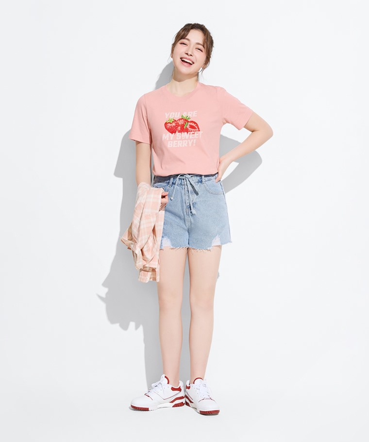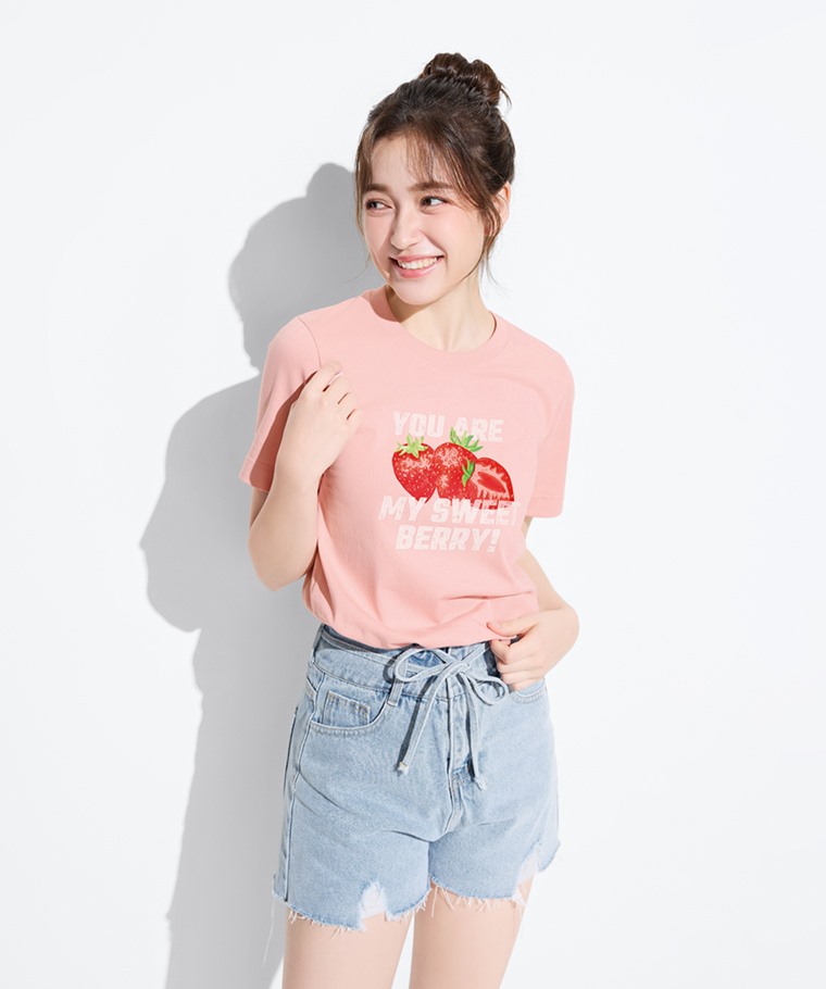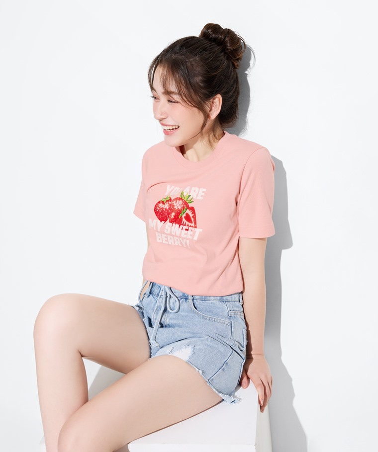草莓厚版印花T恤-女(粉紅-S)