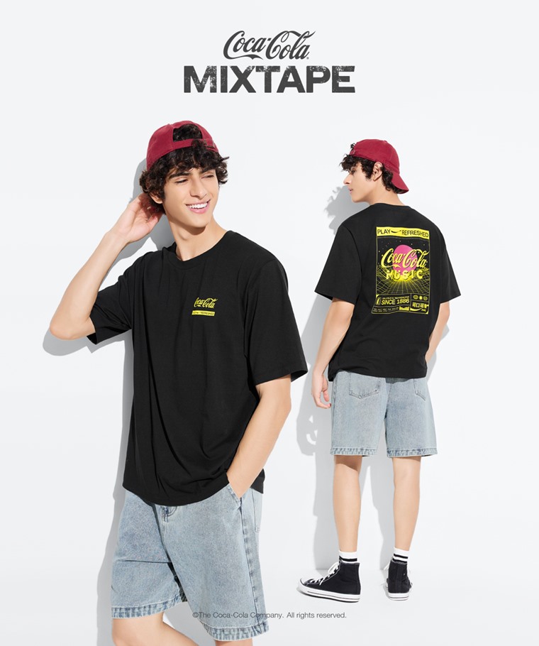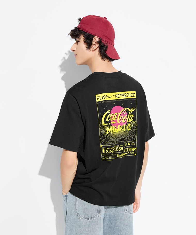 可口可樂寬版印花T恤-06-男(黑色-S)
