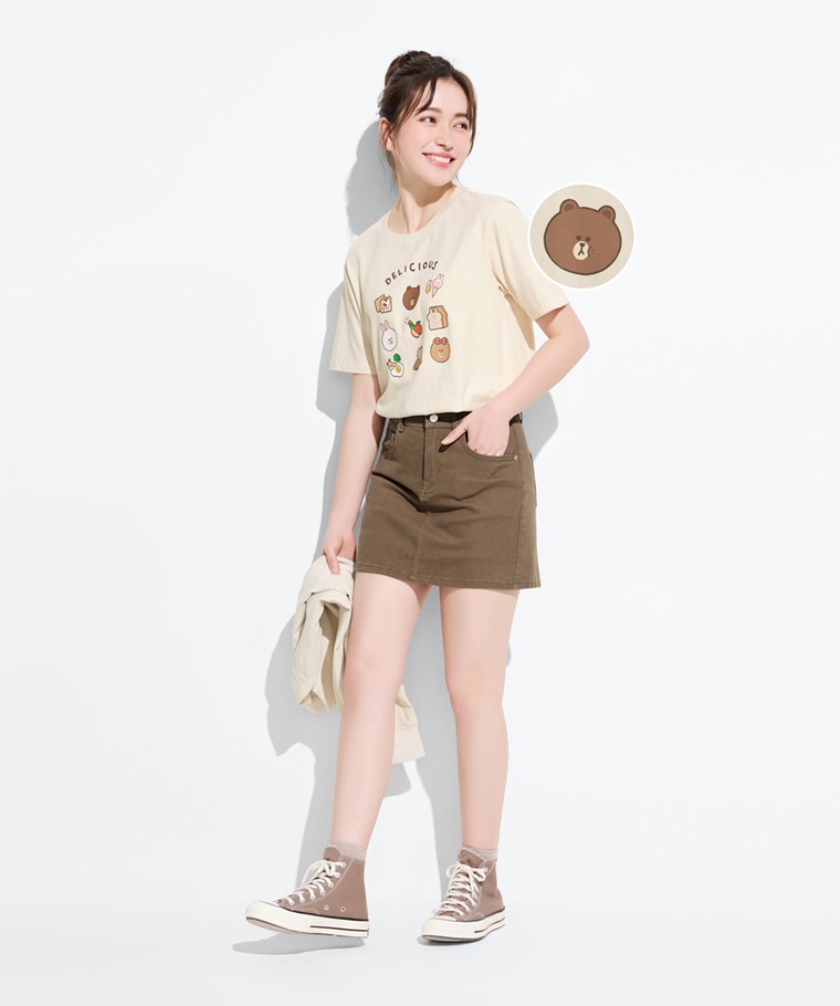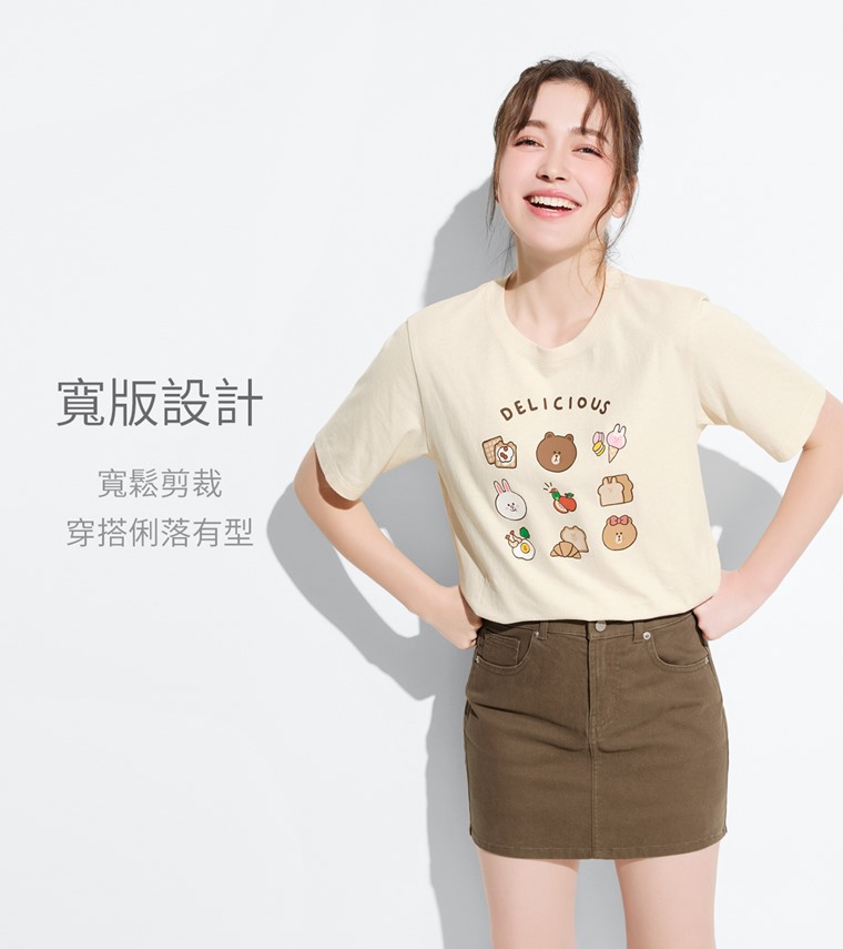 LINE FRIENDS寬版印花T恤-08-女(米杏-S)