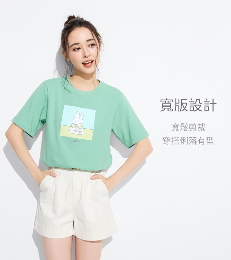 Miffy寬版印花T恤-09-女(淺湖綠-S)