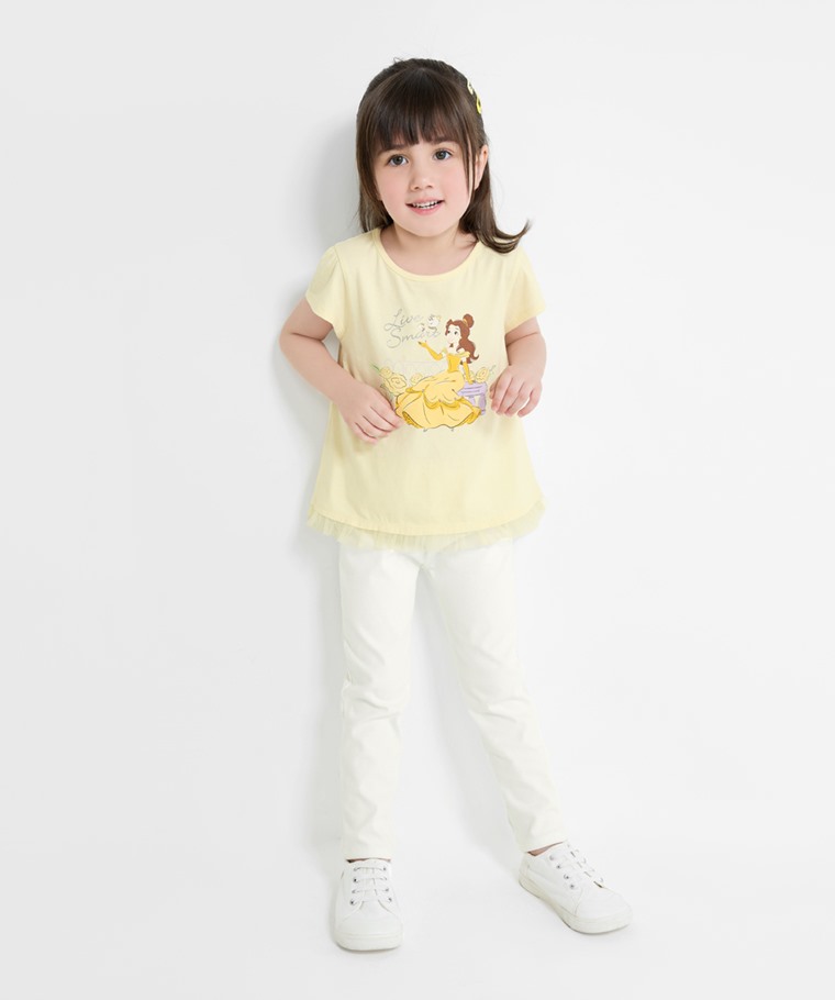 迪士尼系列網紗拼接印花T恤-47-童(淺粉-100)