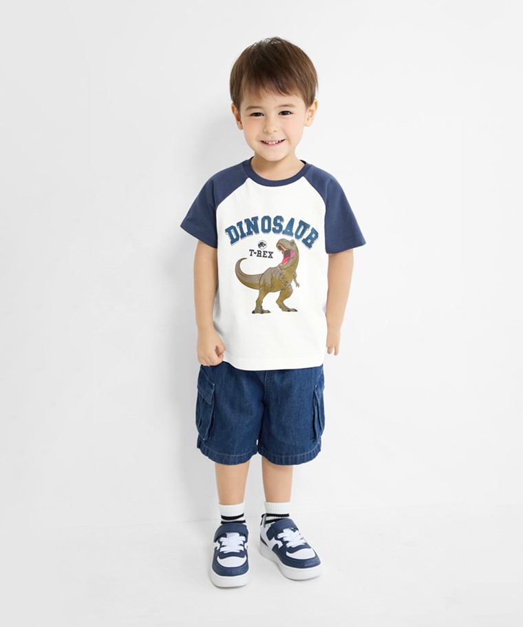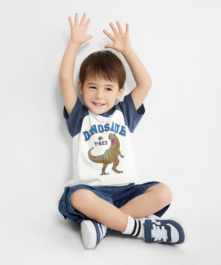 Jurassic World拉克蘭袖印花T恤-08-童(復古藍-150)