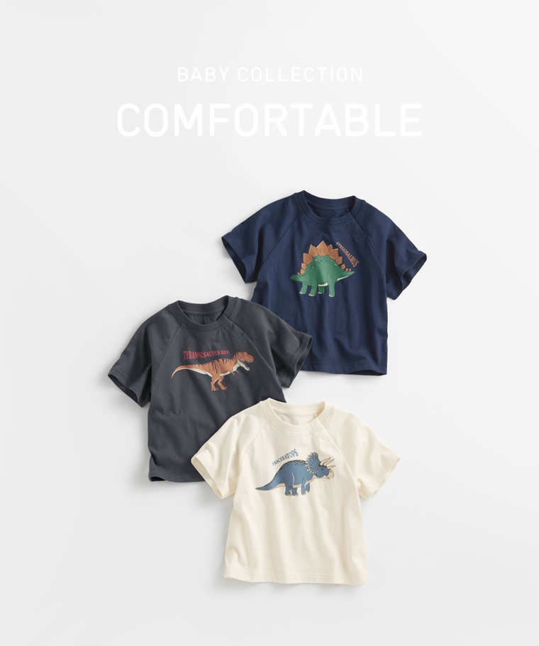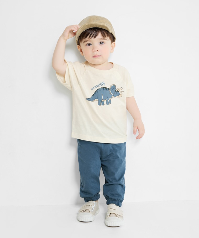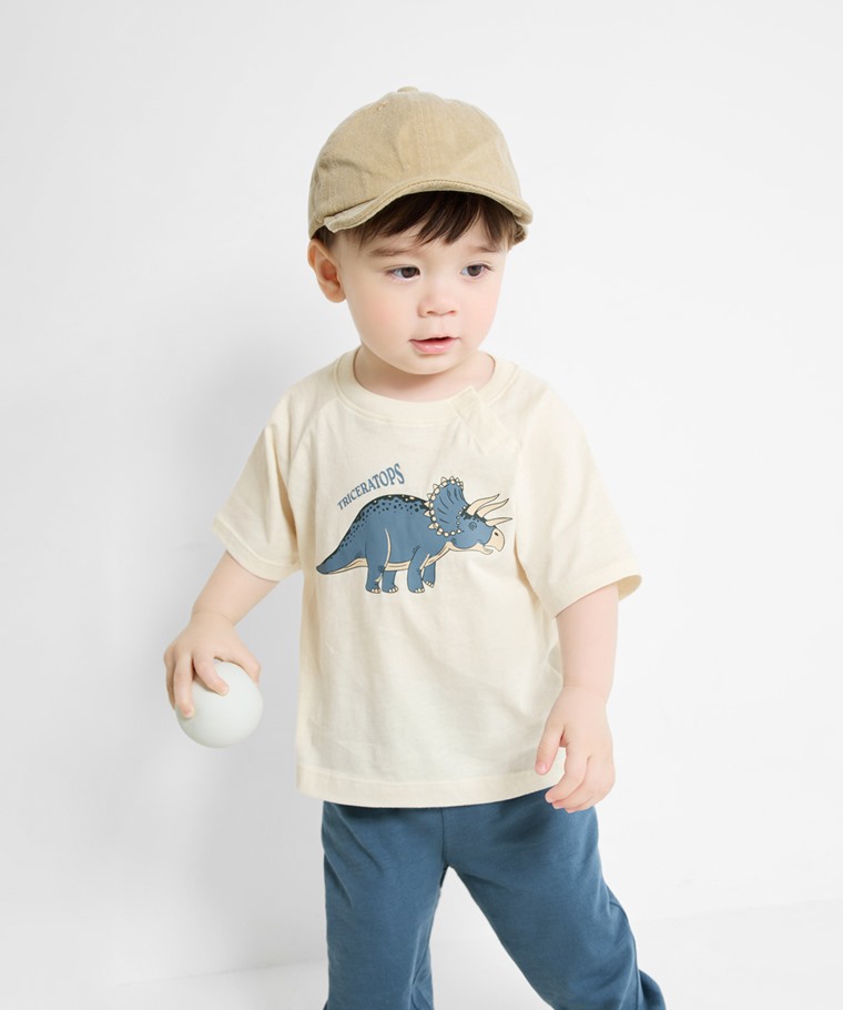 竹節棉寬鬆恐龍印花T恤-Baby(深灰-70)