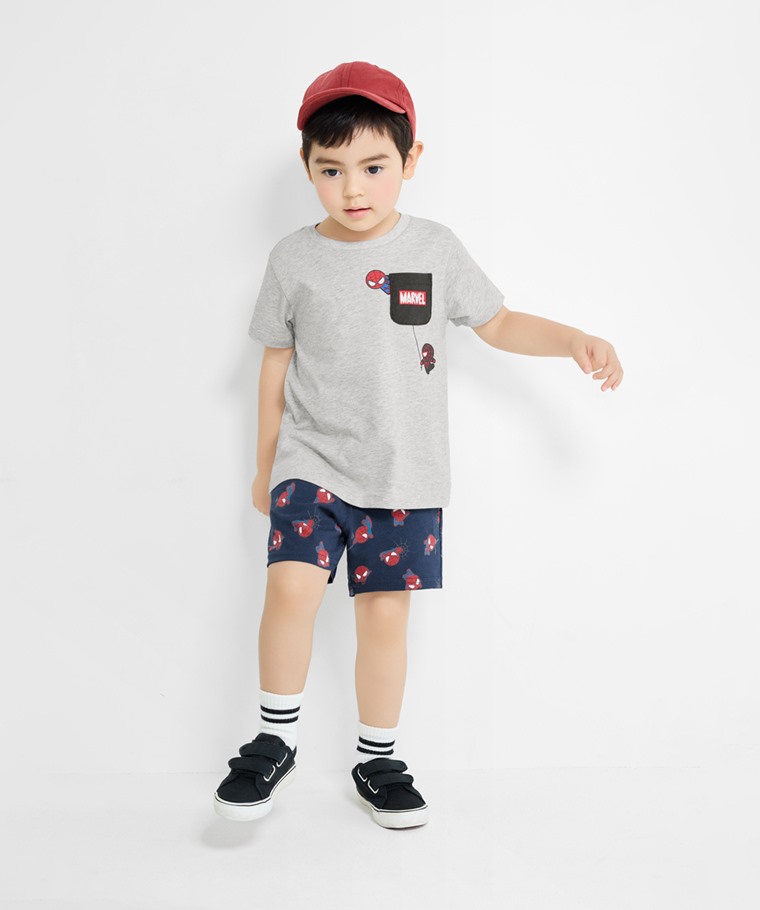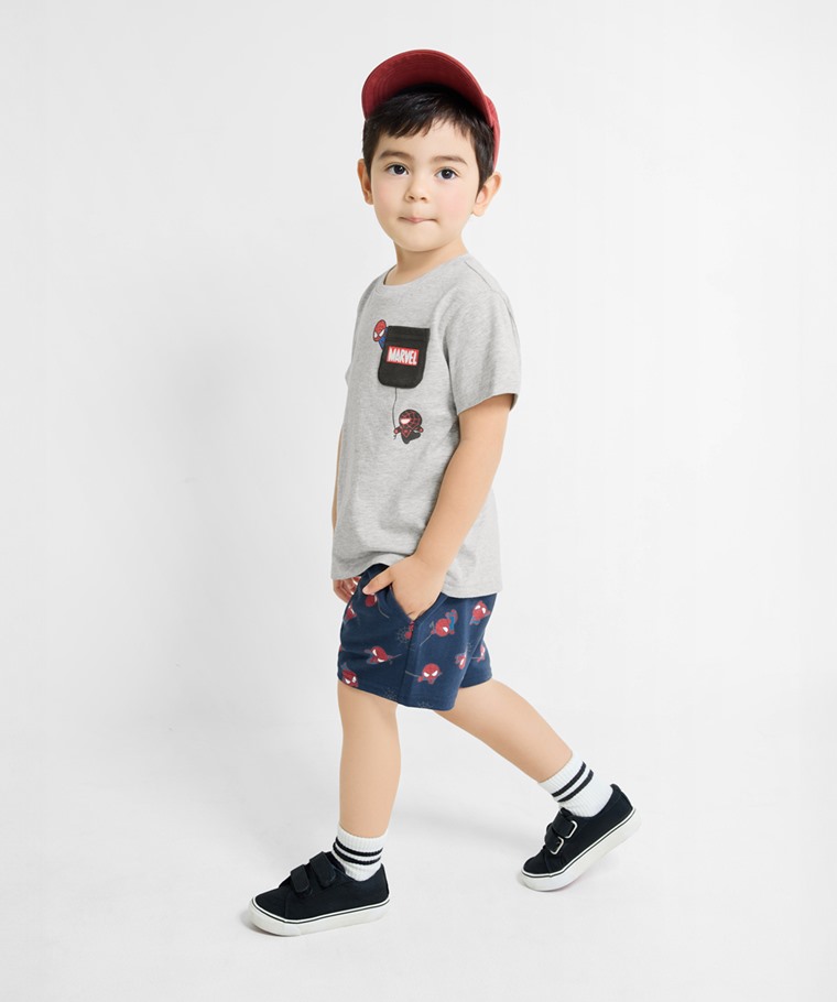 漫威系列竹節棉印花短褲-童(麻花灰-100)