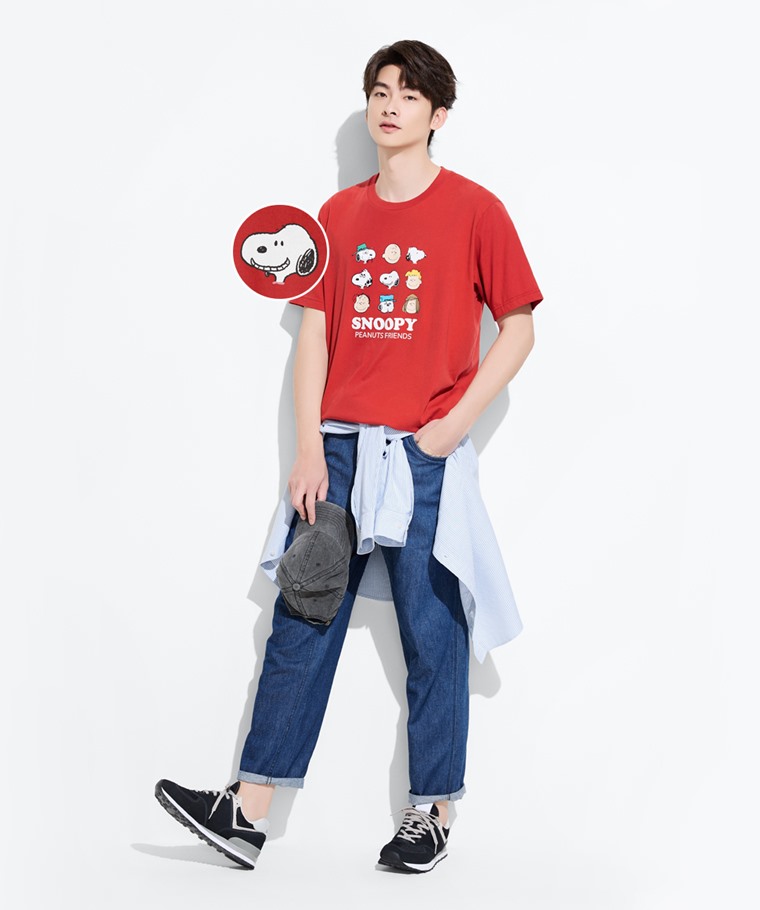 史努比系列印花T恤-08-男(桔紅-S)