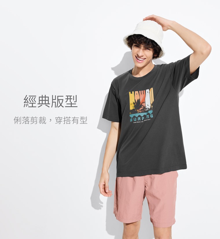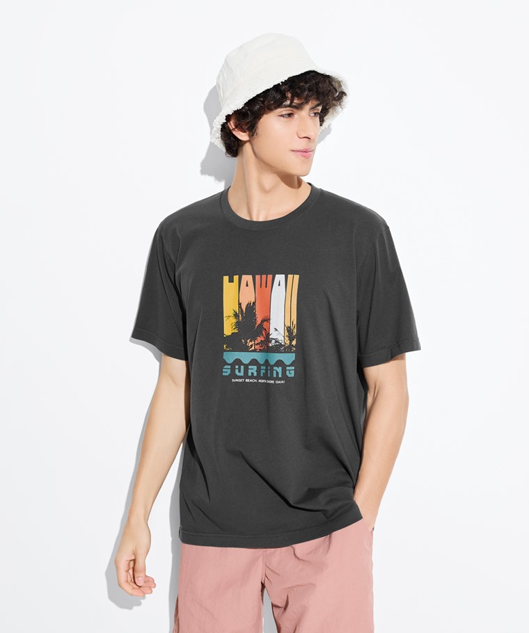 衝浪印花T恤-男(鐵灰-S)