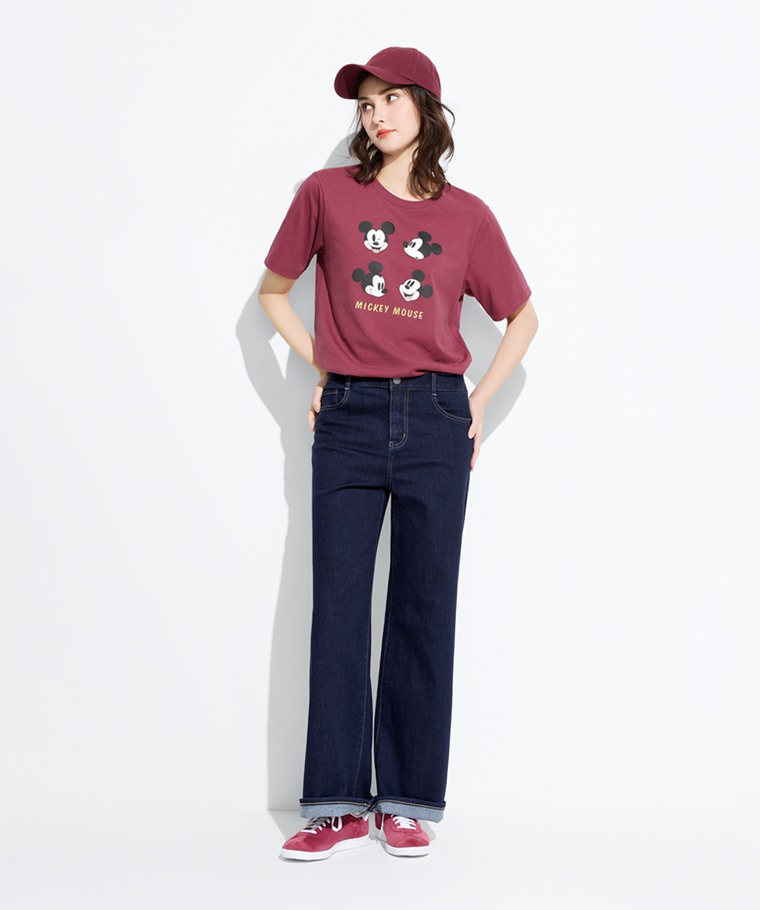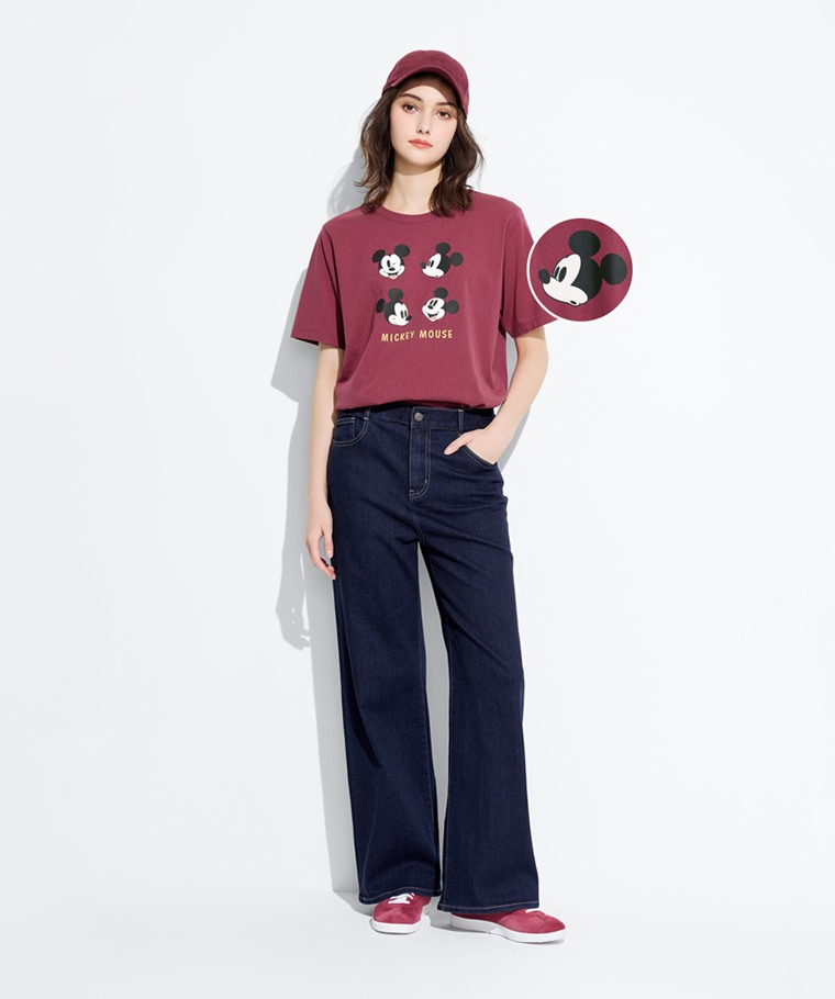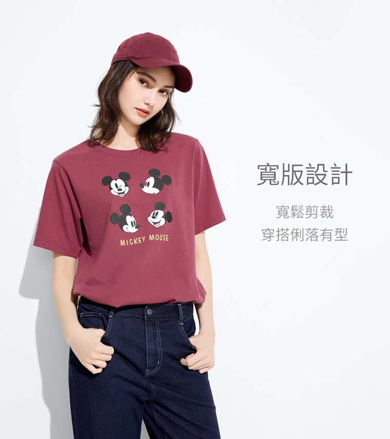 迪士尼系列寬版印花T恤-21-女(深玫紅-S)