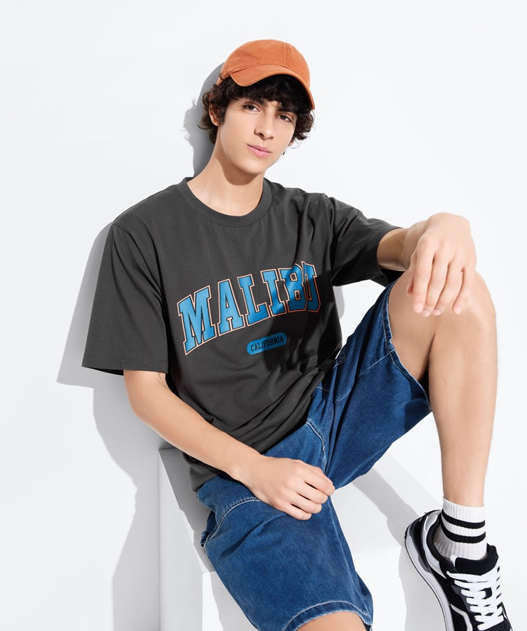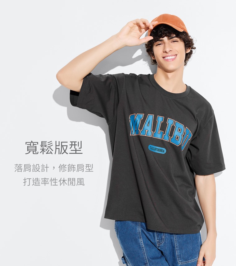 文字寬版印花T恤-01-男(鐵灰-S)