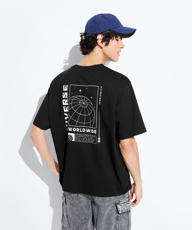 文字寬版印花T恤-06-男(黑色-XXL)