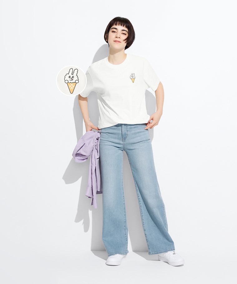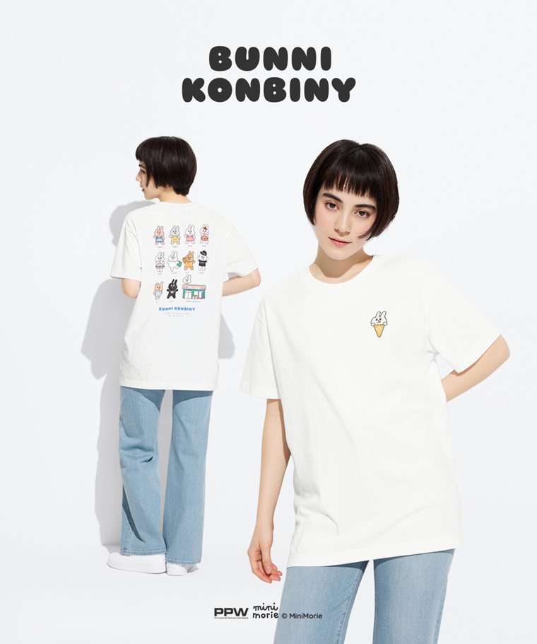 Bunni Konbiny寬長版印花T恤-08-女(白色-S)