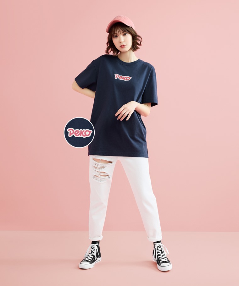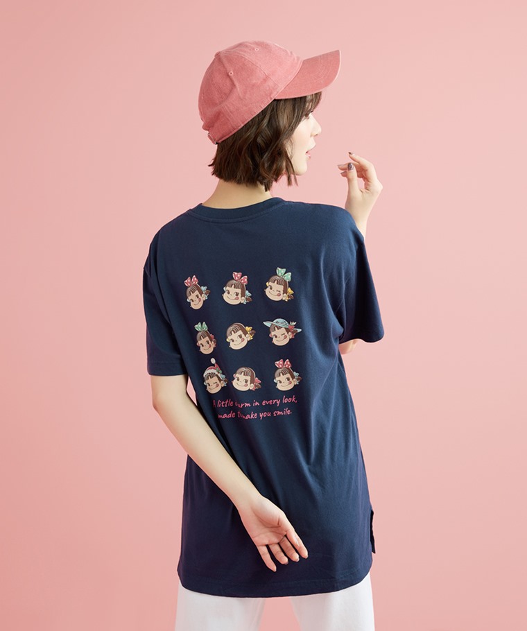 PEKO & POKO寬長版印花T恤-01-女(藏青-S)