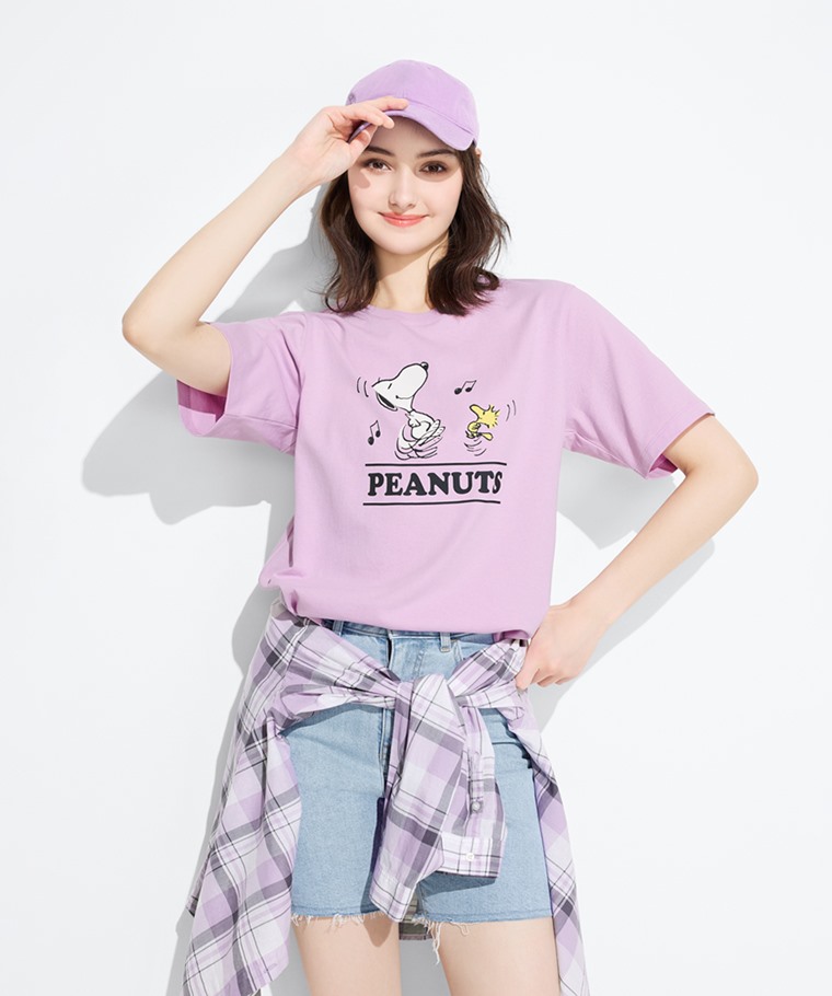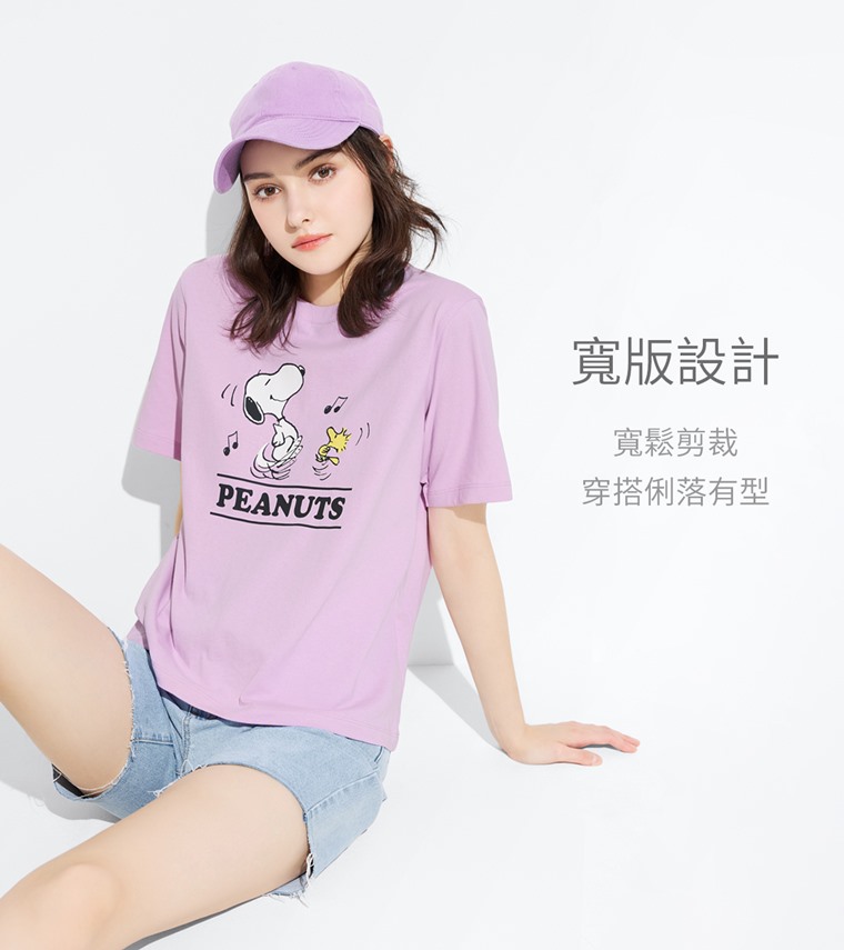 史努比系列寬版印花T恤-16-女(淺紫-S)