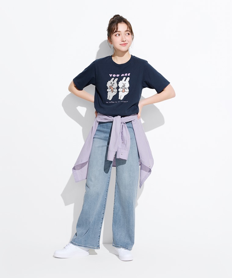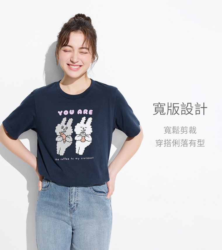 Bunni Konbiny寬版印花T恤-06-女(藏青-S)