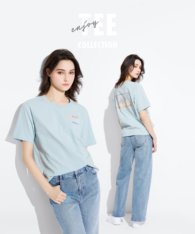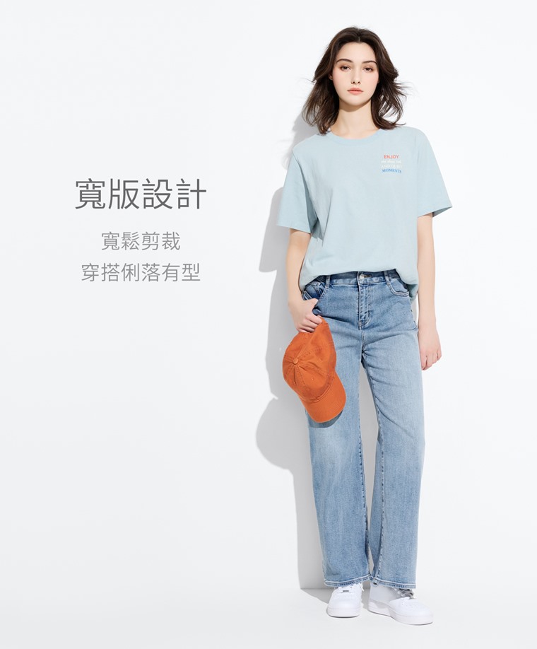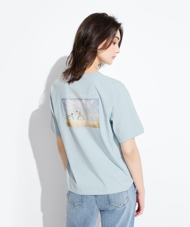 文字相片寬版印花T恤-女(淺灰藍-S)
