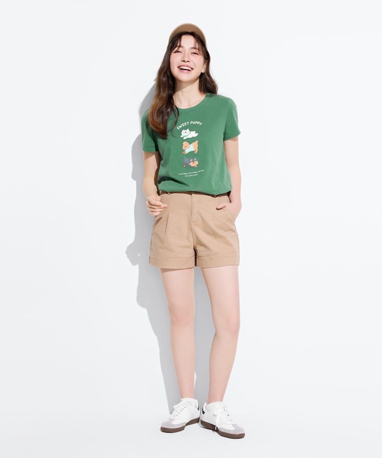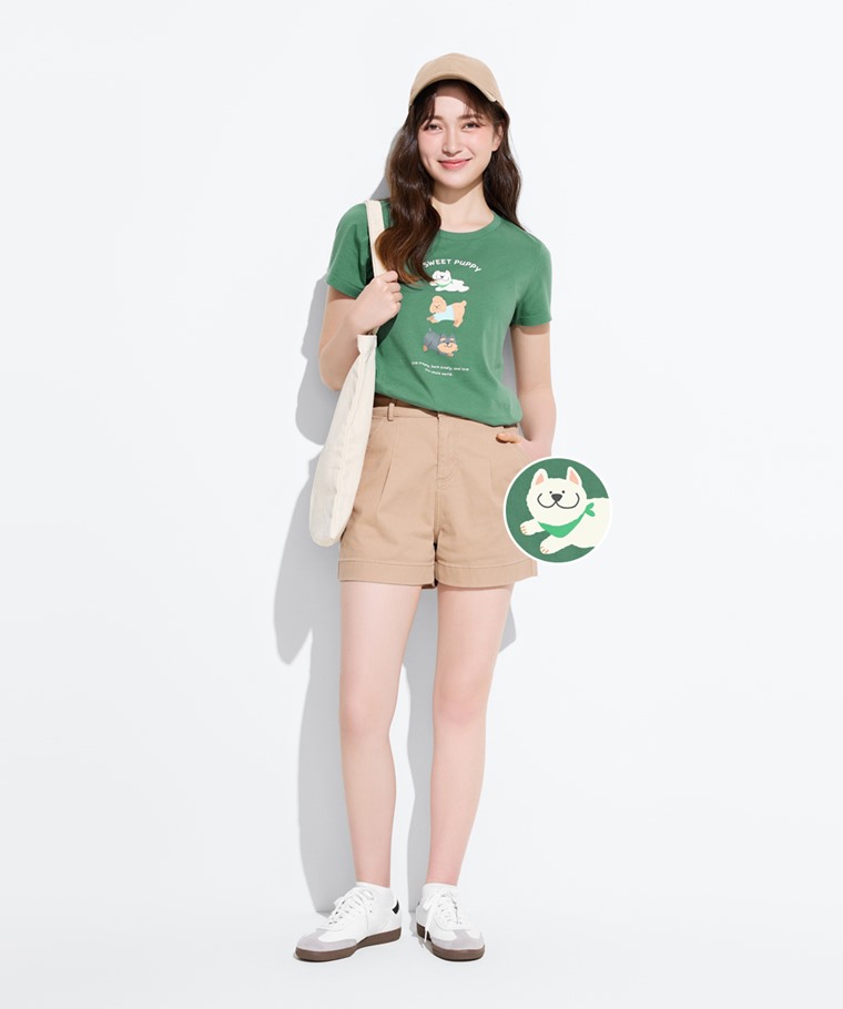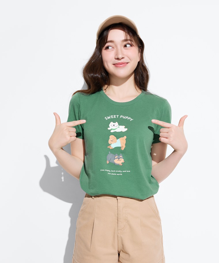 狗狗印花T恤-女(淺灰綠-S)