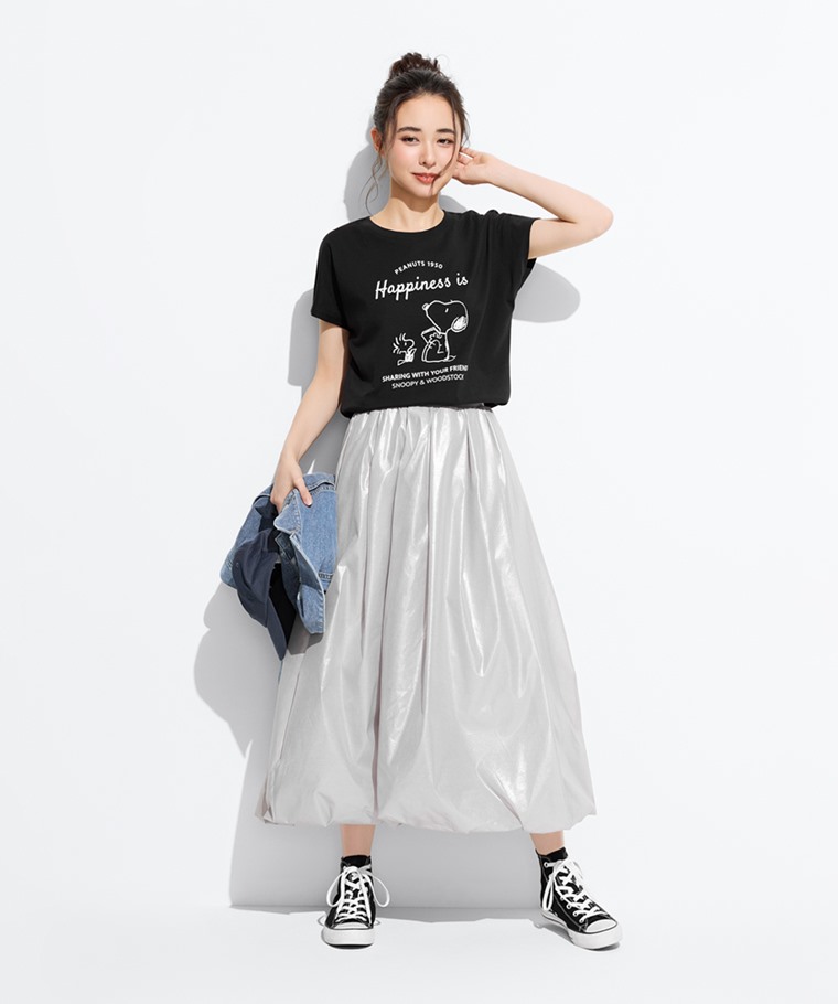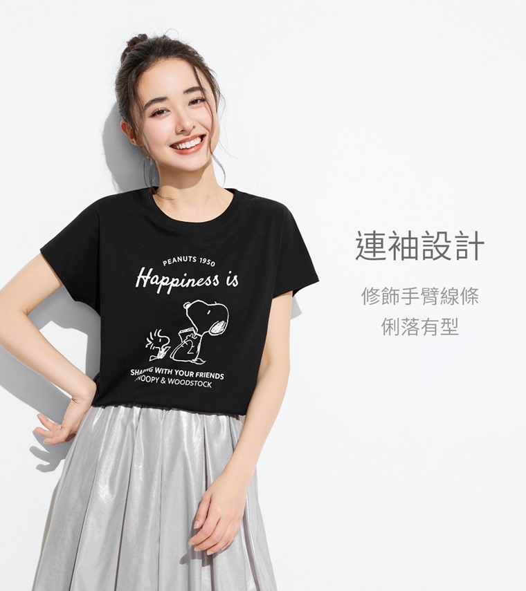 史努比系列連袖印花T恤-19-女(黑色-S)
