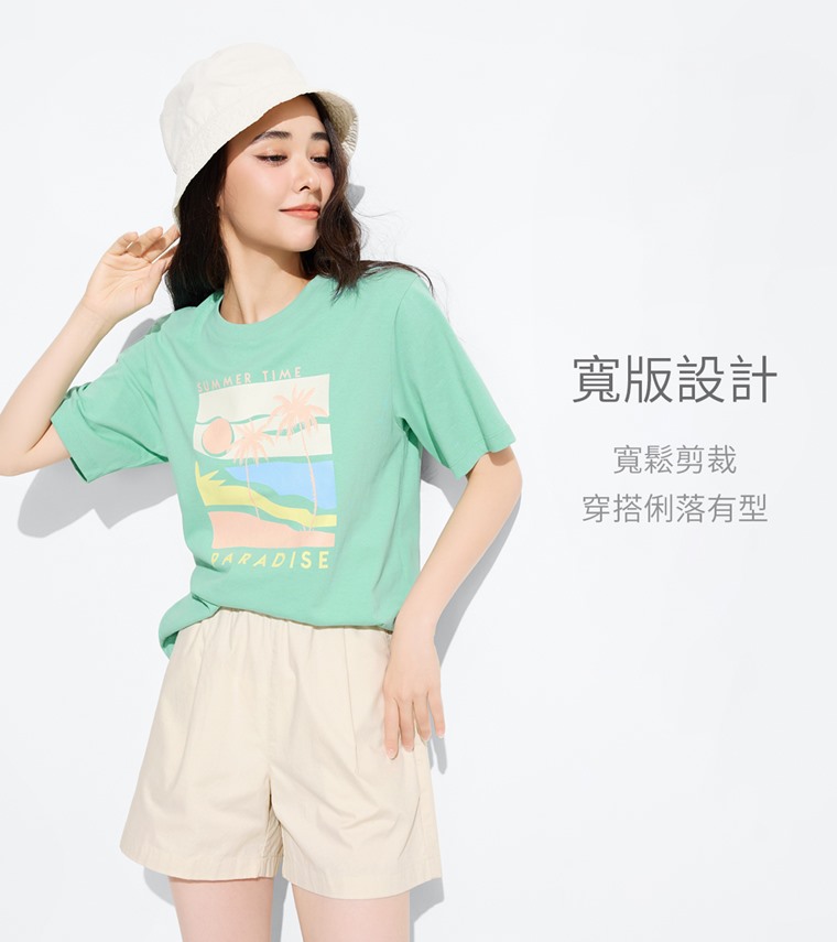 夏日時光寬版印花T恤-女(淺湖綠-S)
